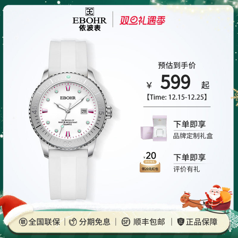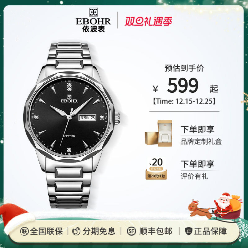 依波表EBOHR情侣款手表男女表钨钢表圈双日历防水时尚腕表5633