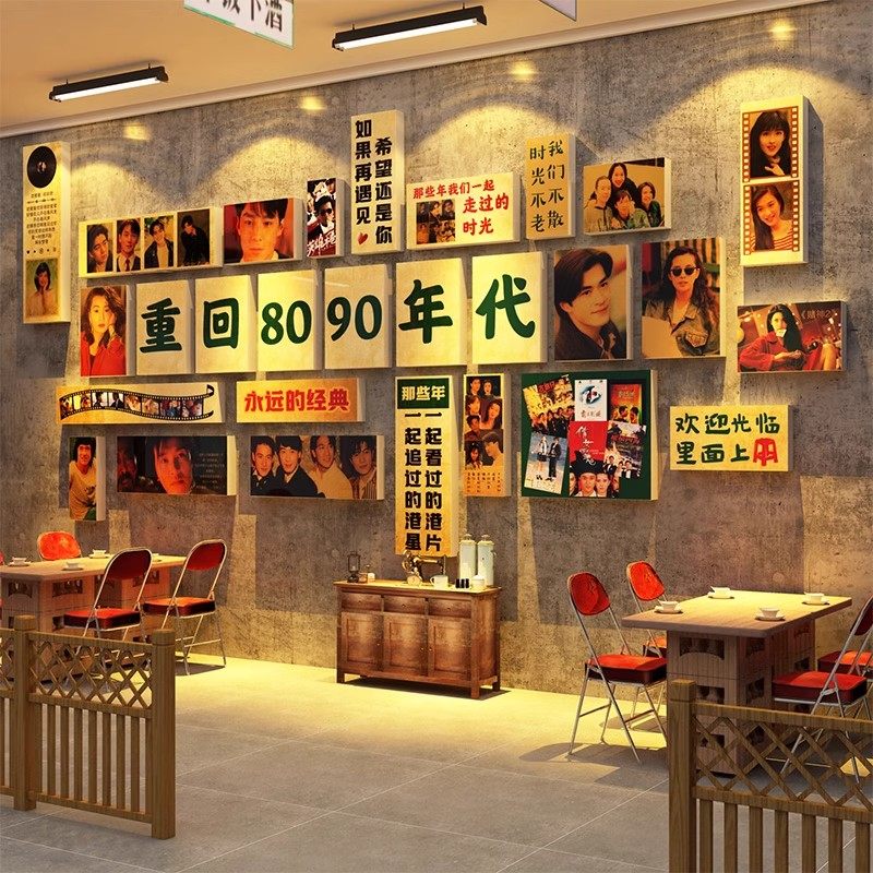 80年代怀旧墙面装饰复古海报墙贴餐饮店墙纸贴纸饭店贴画烧烤壁画