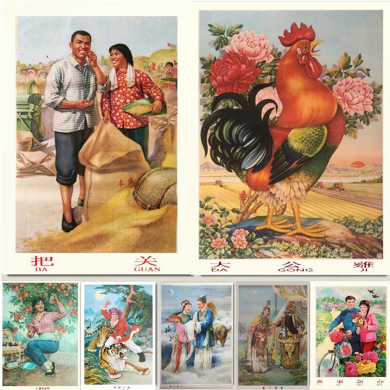 复古画 怀旧海报50607080老旧年画建设农村 把关 大公鸡建设奋斗
