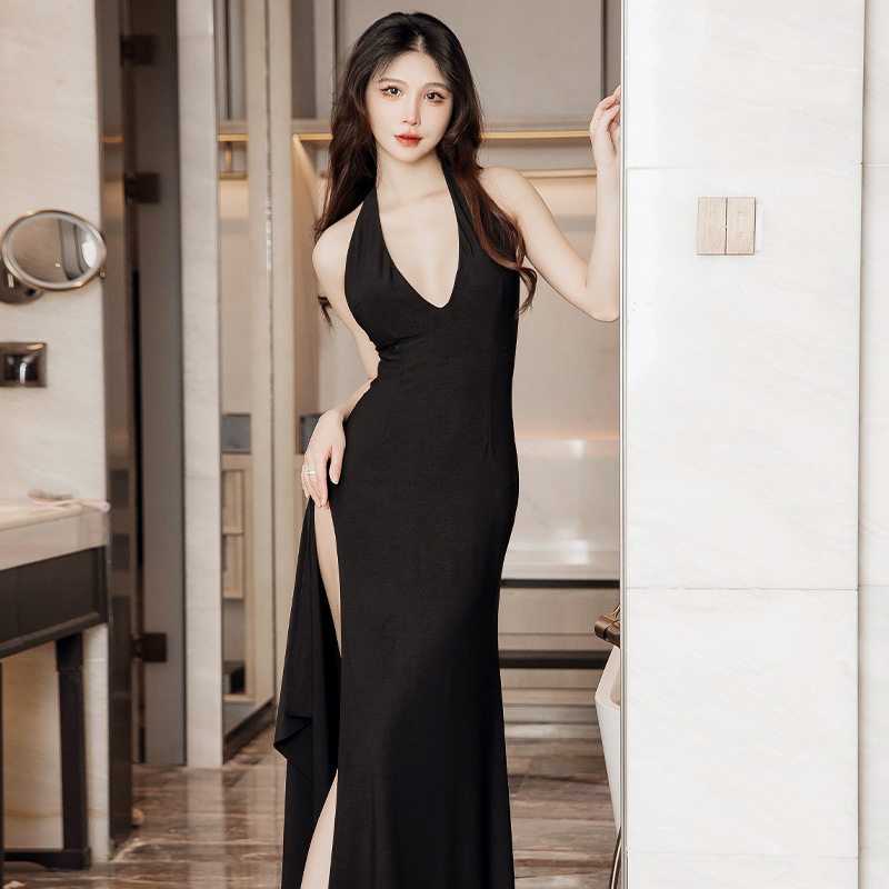 晚宴礼服女长款性感夜店晚礼服夜场25新款挂脖开叉名媛修身连衣裙
