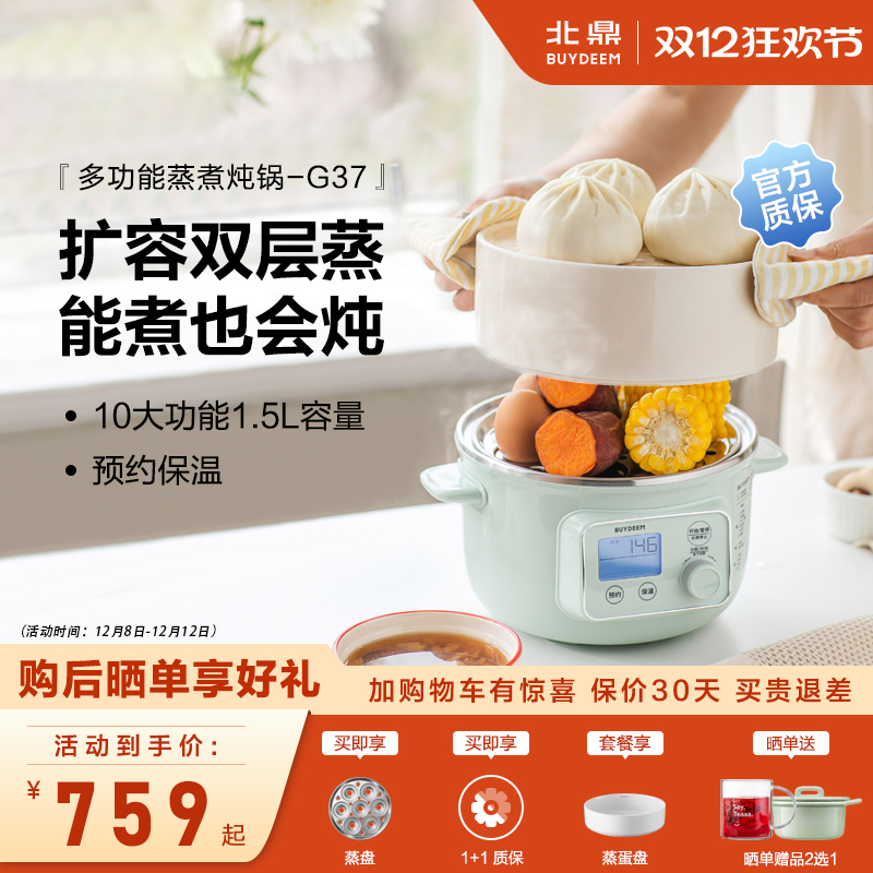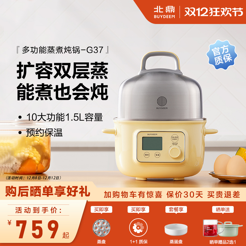 北鼎G37电蒸锅全自动预约不锈钢内胆电炖锅小蒸锅1.5L家用蒸煮锅