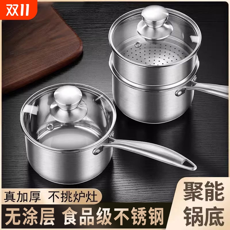 304不锈钢奶锅宝宝辅食锅煮面锅小汤锅家用小蒸锅煤气电磁炉通用