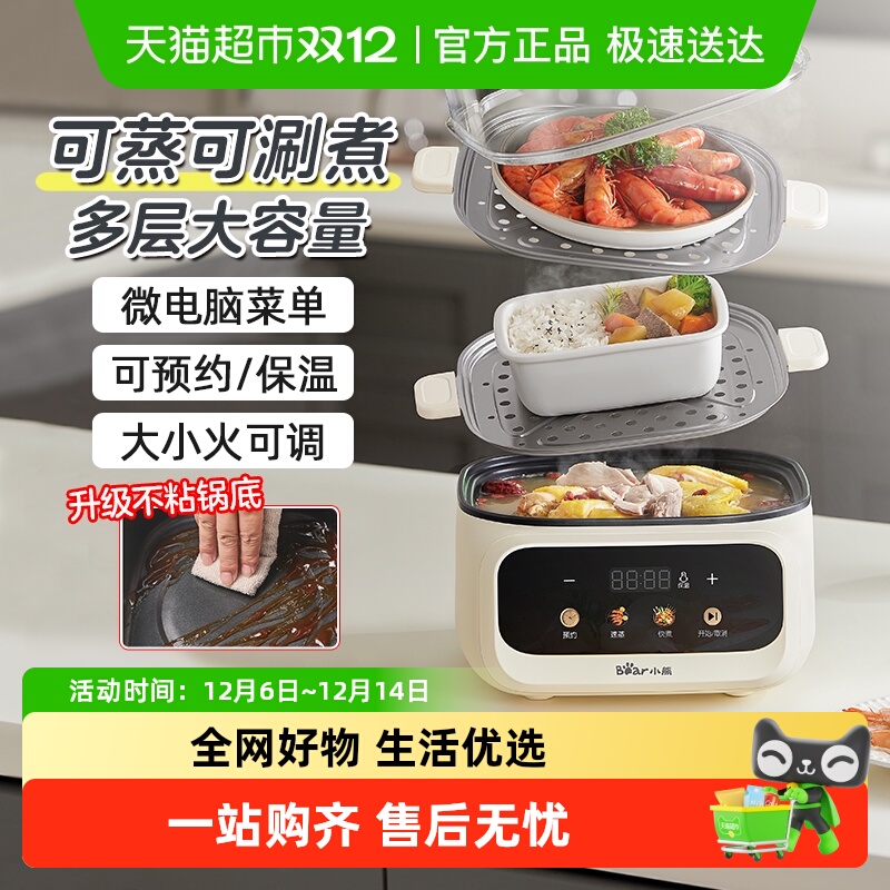 小熊电蒸锅多功能家用小型三层多层蒸煮一体锅烹饪机小蒸锅电蒸笼