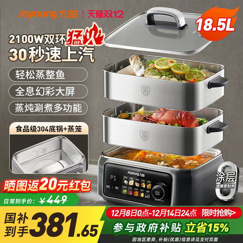九阳电蒸锅多功能家用三层全不锈钢蒸煮炖一体锅2025新款旗舰正品
