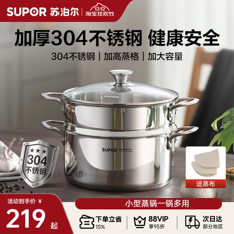 苏泊尔24小型蒸锅家用304不锈钢双层汤锅蒸煮一体小蒸锅家用煮锅