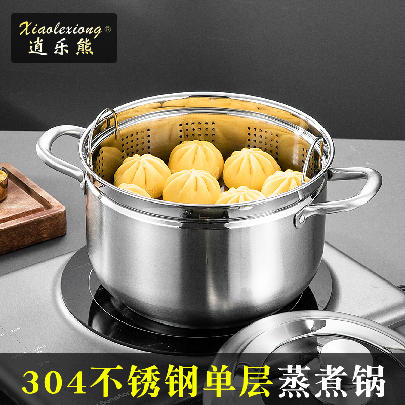 加厚食品级304不锈钢蒸煮锅家用一层单层小蒸锅燃气灶电磁炉专用