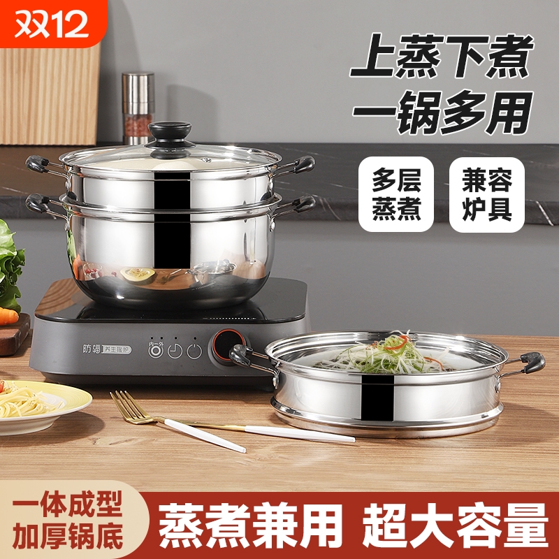 家用不锈钢汤锅用小蒸锅奶锅燃气电磁炉锅具大容量多层食品级蒸汽