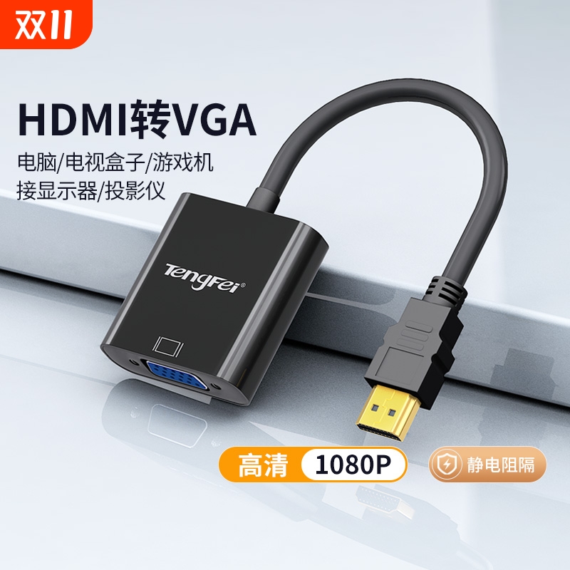 腾飞vga转hdmi转换器VGA公头转HDMI母头带音频笔记本电脑连显示器
