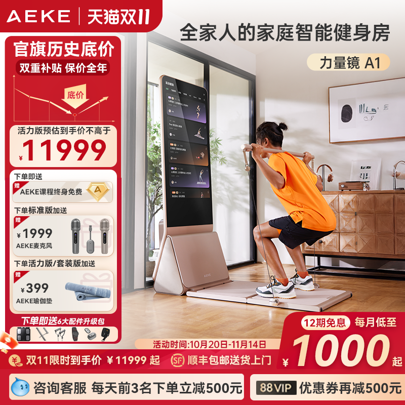 AEKE力量镜A1魔镜智能健身镜运动镜全身综合训练站智能家用多功能