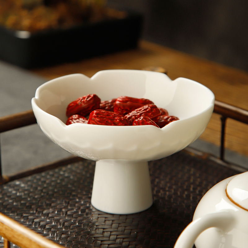 速发家用白瓷高脚盘中式水果盘陶瓷茶点盘茶室零食点心小托盘高足