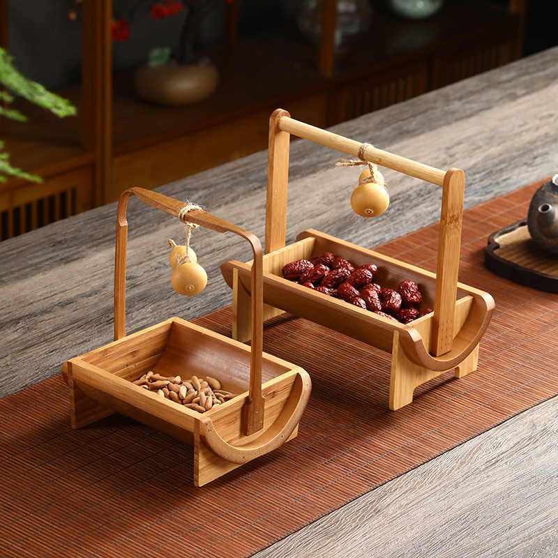 竹制品提手点心盒中式水果盘糕点盒提梁盒干果盘甜品台零食收纳盒