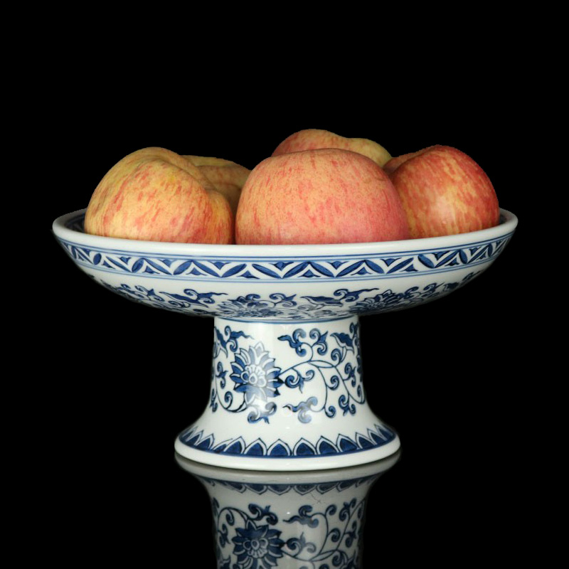 景德镇陶瓷青花高足盘贡盘中式水果盘复古一体式高脚果盘瓷器供盘