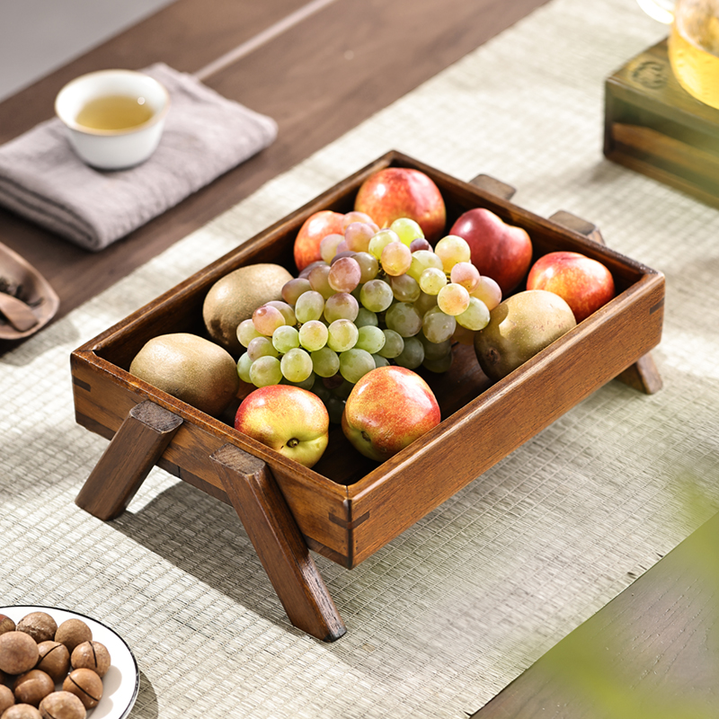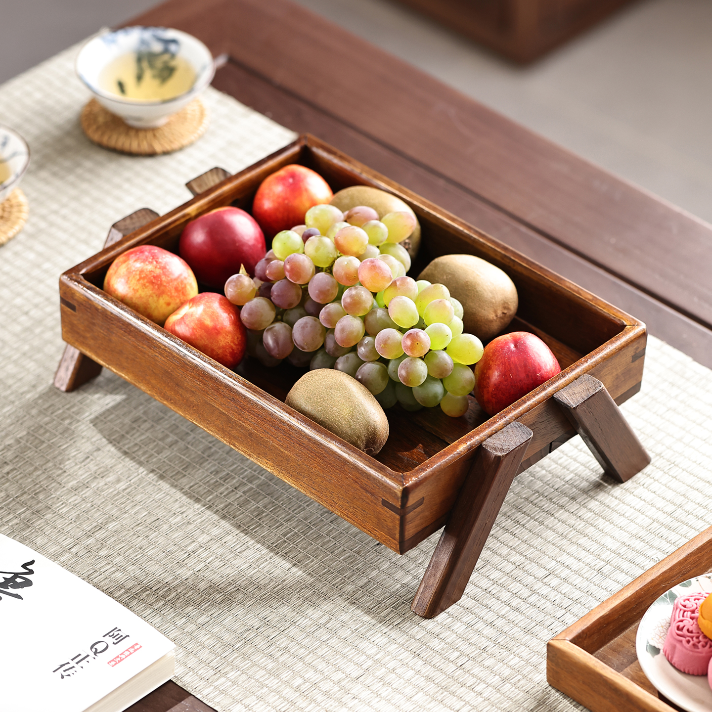 复古木质高脚托盘中式水果盘佛手柑点心盘甜品台展示架艺术感摆盘