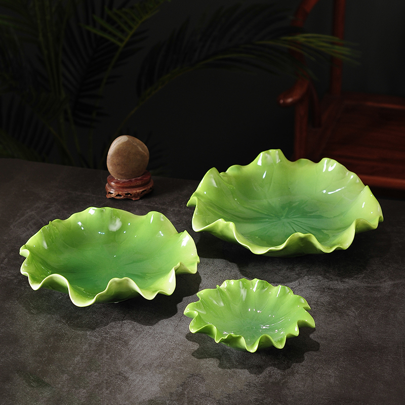 荷叶大果盘复古新中式水果盘古典客厅茶几软装创意家居装饰品摆件