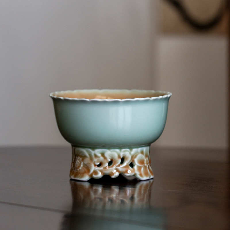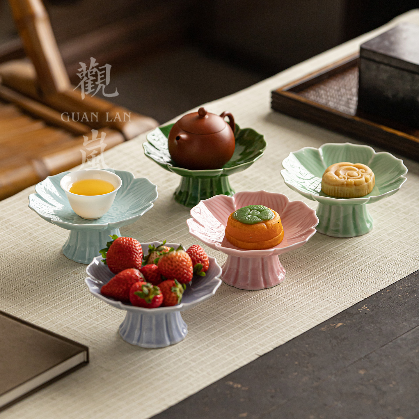 观岚陶瓷高脚茶点盘中式水果盘禅意供佛盘精致茶室点心盘糕点摆盘