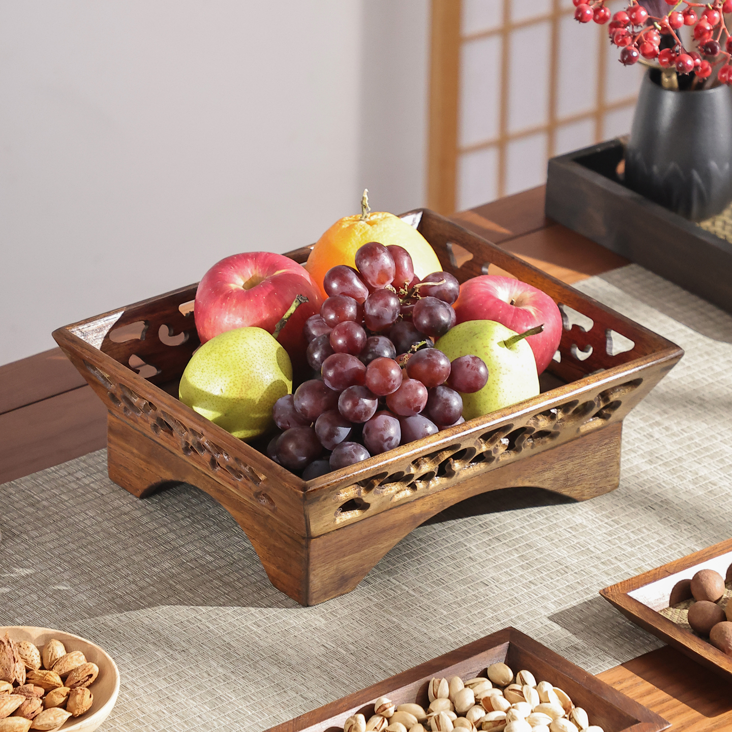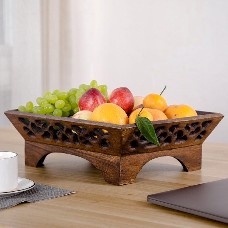 泰国家用客厅茶几实木果盘糖果盘零食盘复古创意摆件新中式水果盘