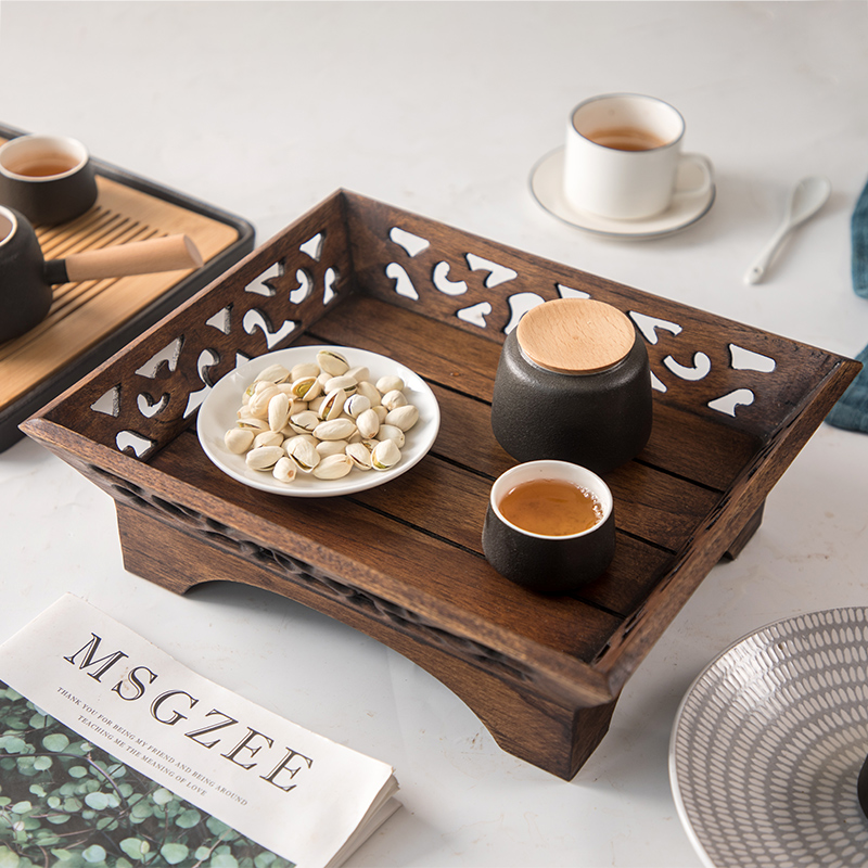 异丽泰国实木果盘客厅茶几零食托 托盘木质家用覆古新中式水果盘