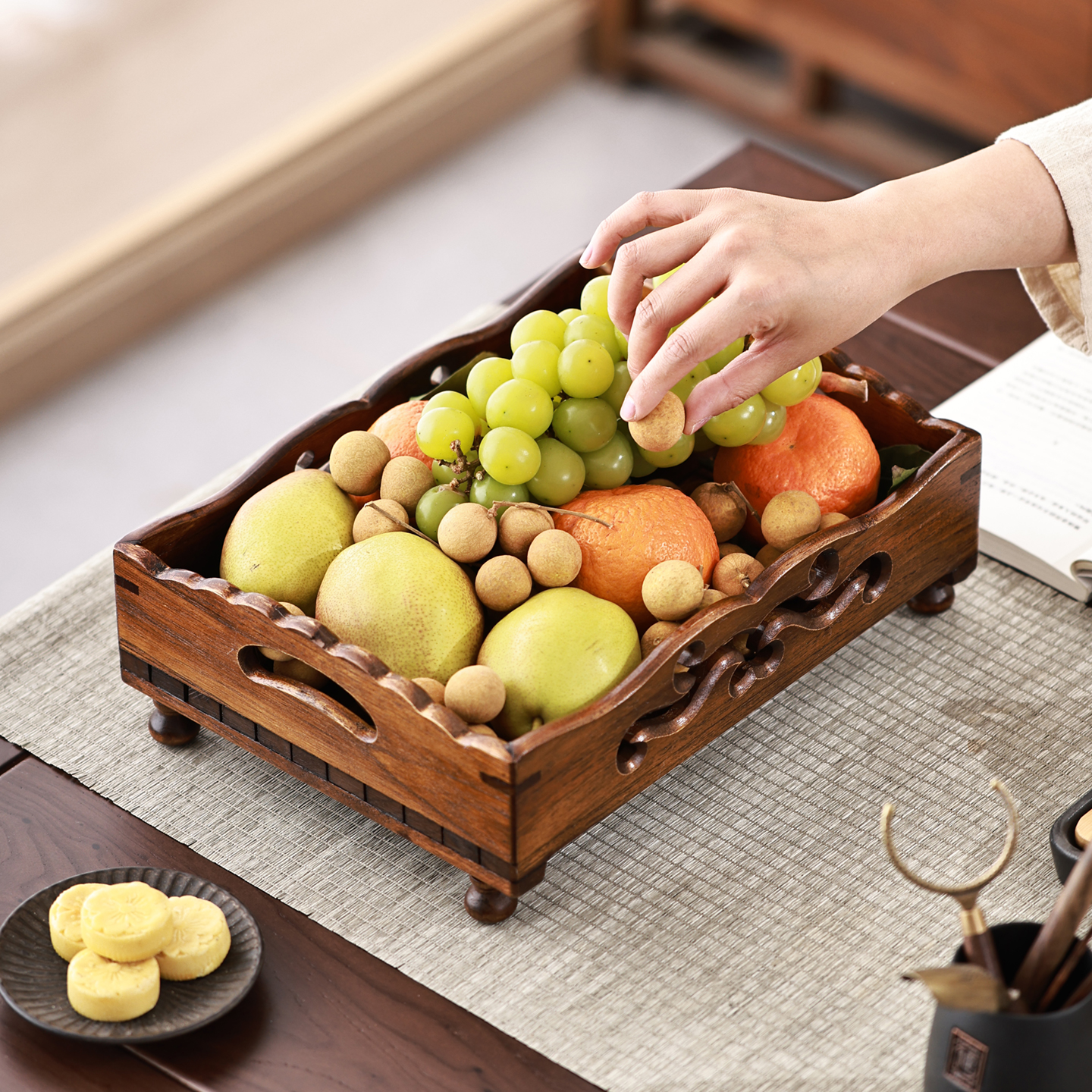 异丽泰国实木果盘客厅茶几零食托盘木质家用复古新中式水果盘果篮