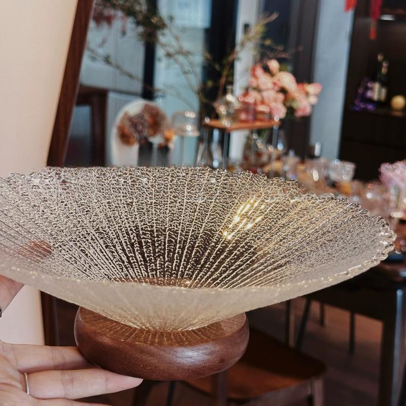 宜集堂新中式水果盘玻璃磨砂高级水晶糕点果盘艺术感客厅茶几家用