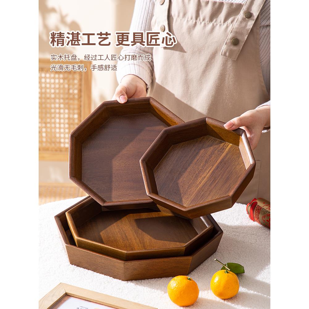 客厅实木果盘家用茶几糖果零食盘木质复古托盘新中式水果盘点心盘