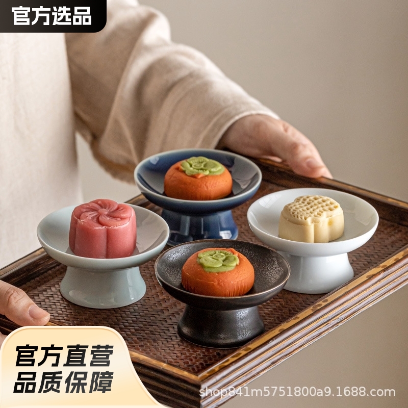 中式复古禅意高脚糕点盘茶点盘陶瓷水果盘下午茶点心盘精致贡供盘
