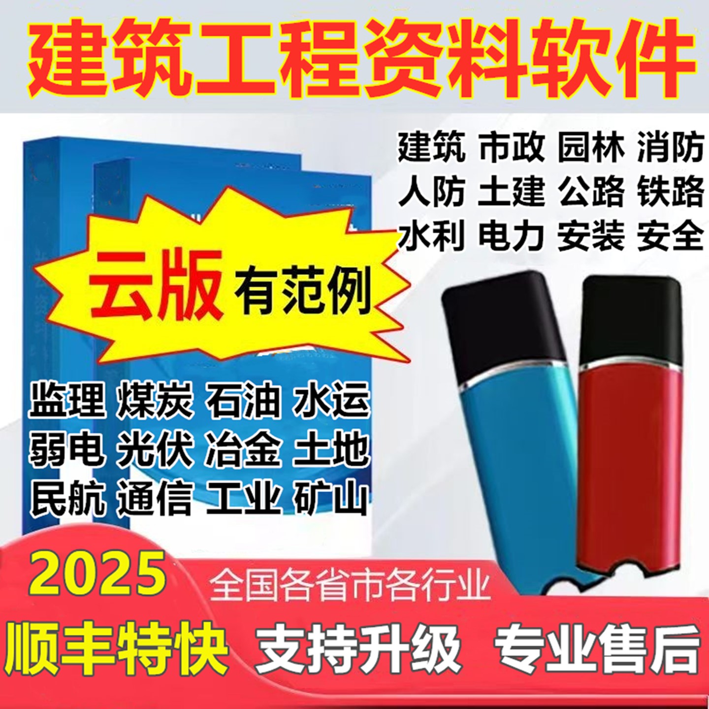 2025筑业云资料建筑工程软件市政园林装饰修水利水电力消防安全公路监理煤炭冶金光伏铁路矿山工业加密狗锁