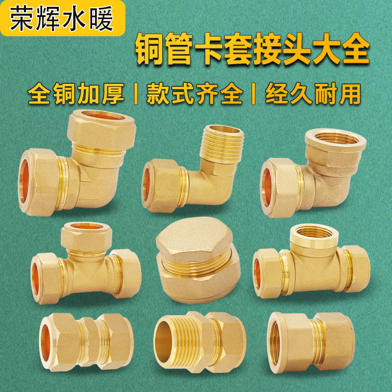 加厚铜管卡套直接双卡套平板太阳能集热器铜接头铜配件螺纹221615