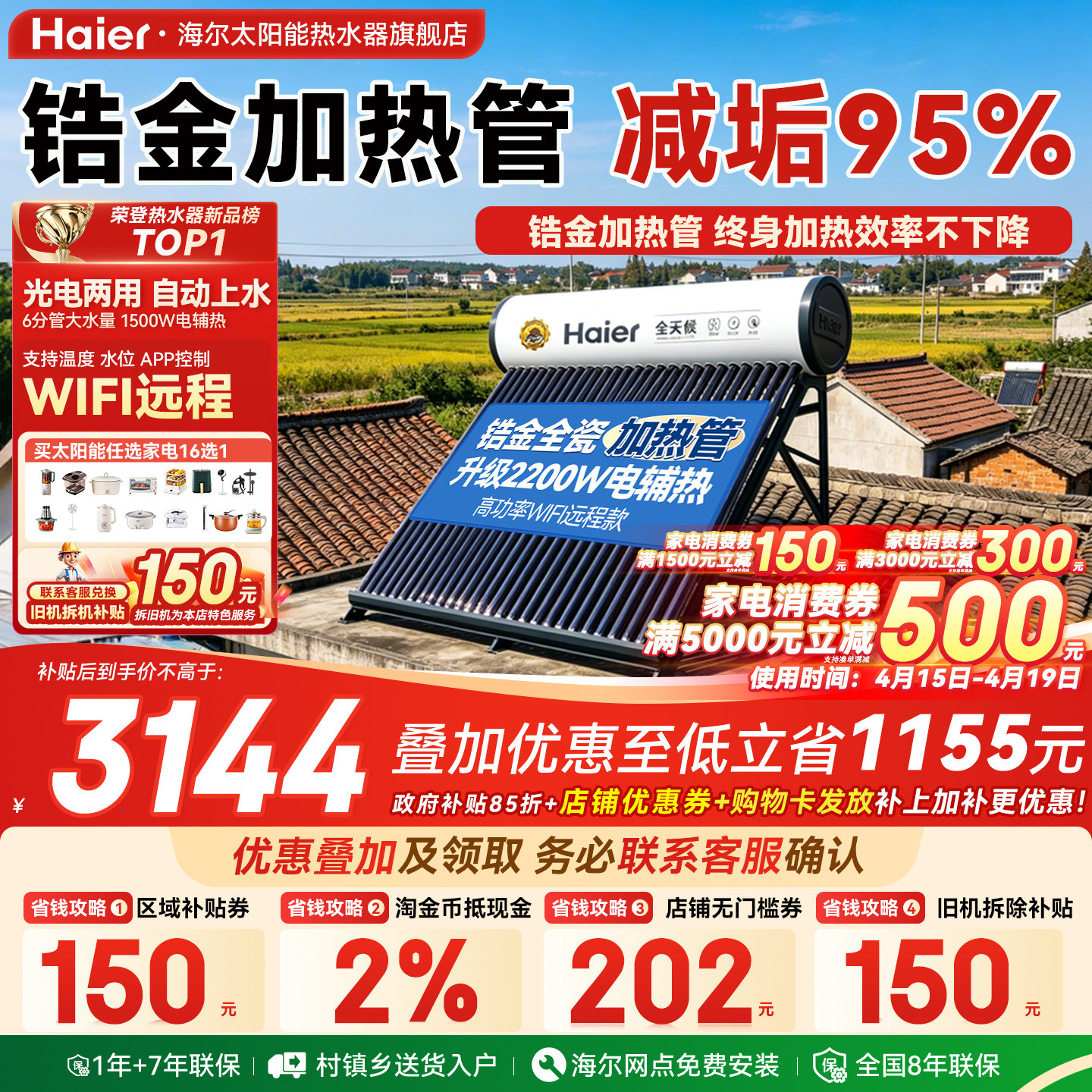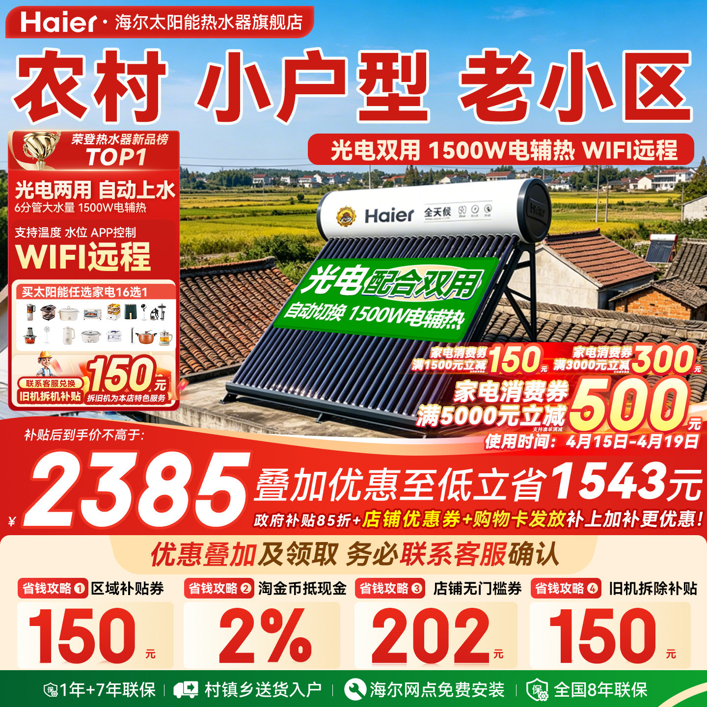 【政府补贴15%】海尔太阳能热水器电加热一体家用集热器农村新型