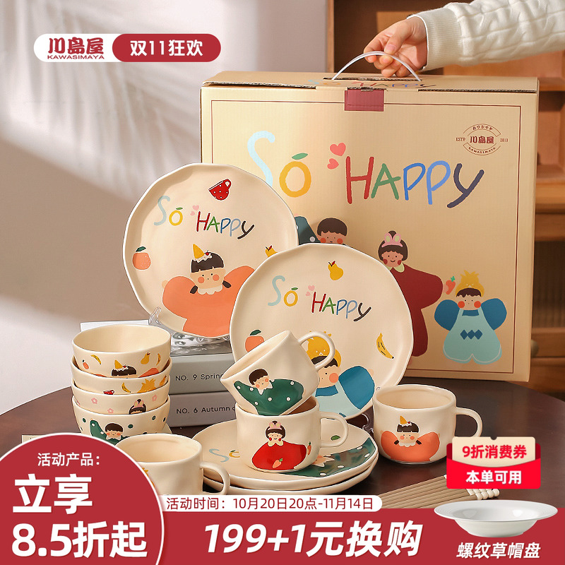 川岛屋一家四口餐具碗碟套装家用乔迁新居礼品结婚新婚生日礼物女