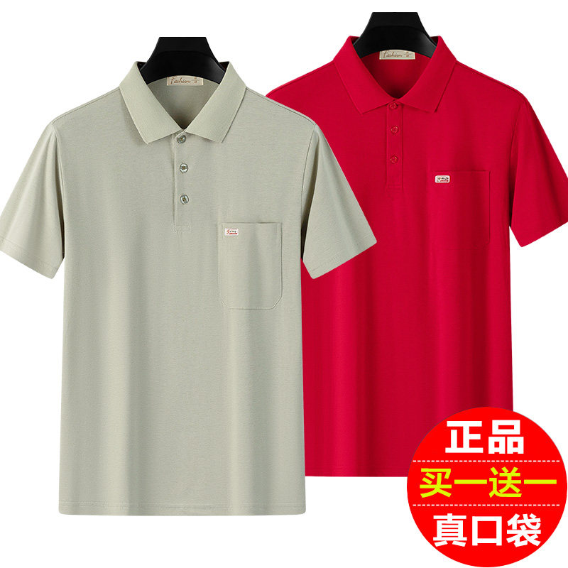 丝光棉短袖t恤男士休闲潮流真口袋上衣中老年爸爸夏装polo衫体恤