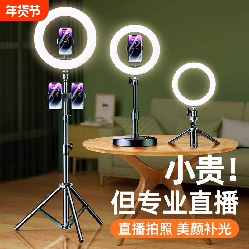 2025新款手机补光灯支架直播专用设备全套抖音拍摄支撑架美颜桌面落地网红主播专业拍照神器室内打光灯三脚架
