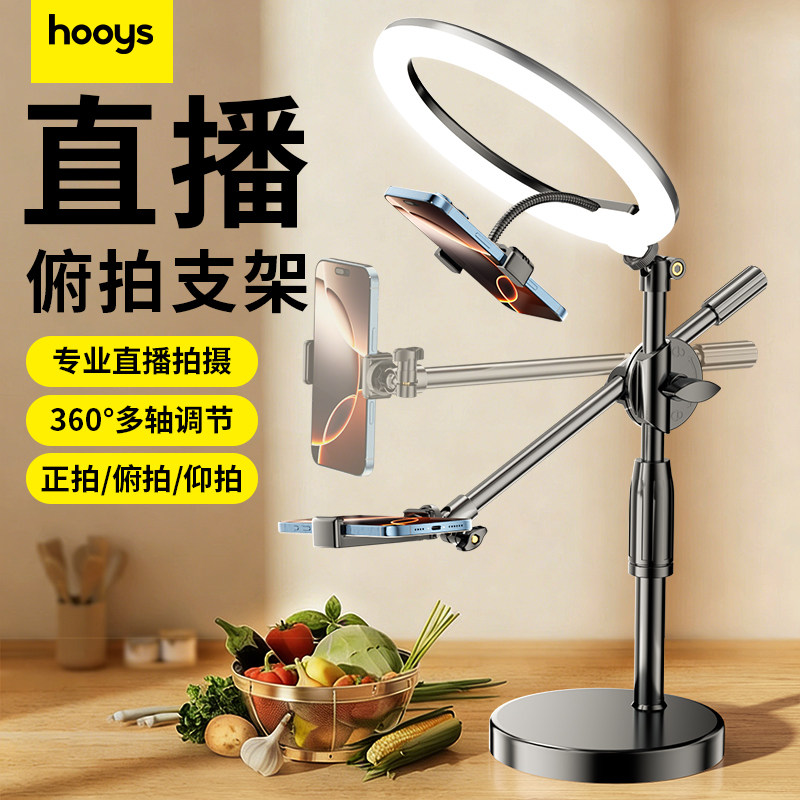专业俯拍】手机支架桌面直播自拍杆三脚架拍美食录视频神器网课专用开箱vlog老师书法俯视拍摄带补光灯支撑架