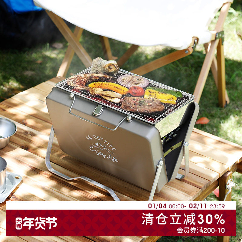 Captain Stag鹿牌户外烧烤架便携式折叠手提箱式烤肉架子