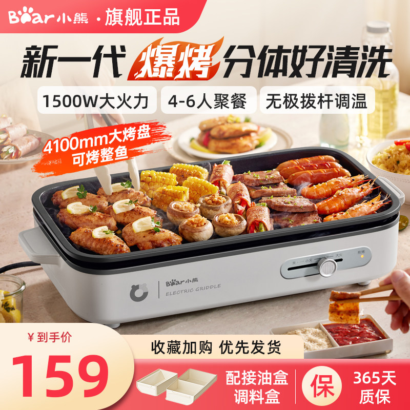 小熊烤肉锅电烤盘家用烤肉炉烤鱼盘烹饪机室内轻烟可拆户外烧烤炉
