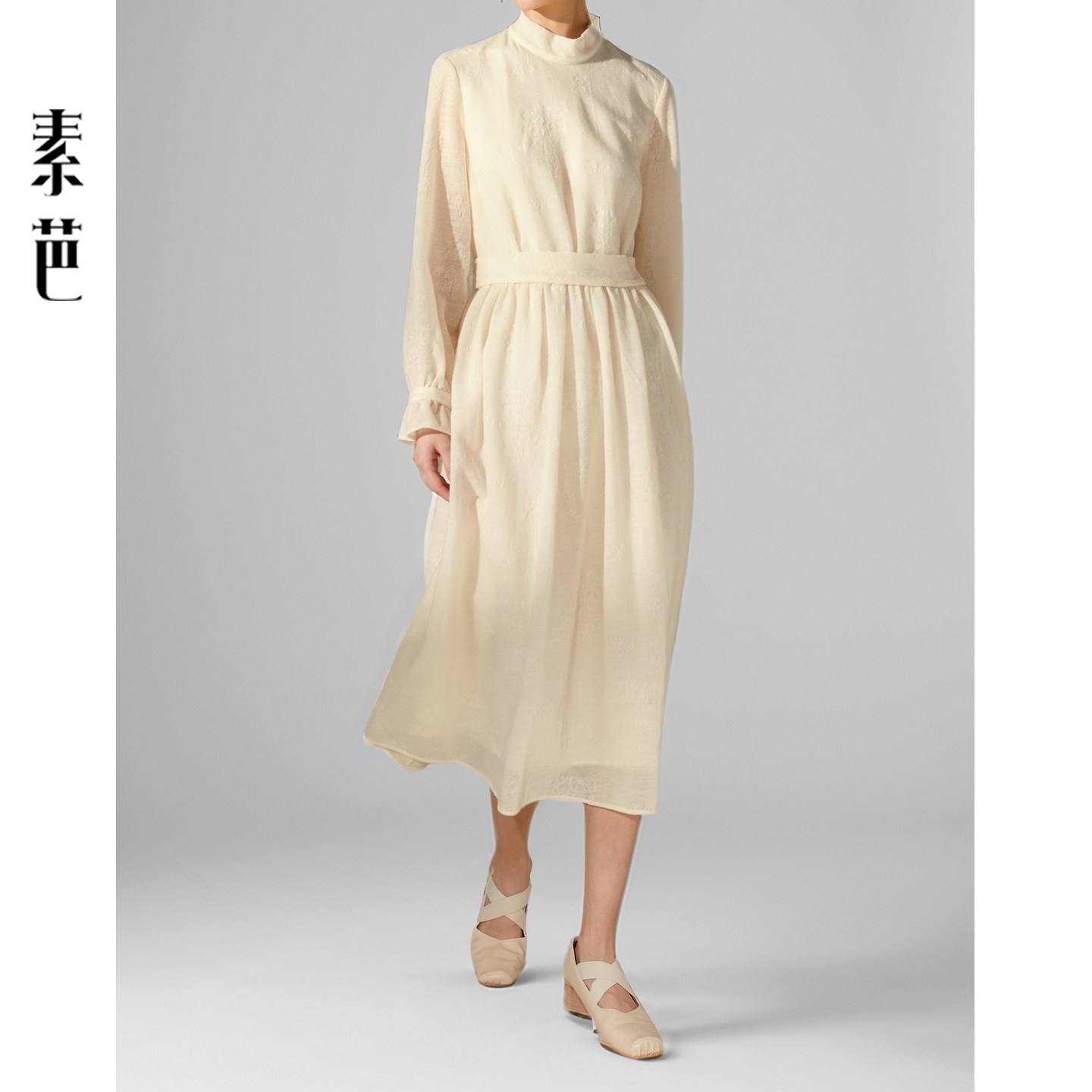 素芭优雅气质收腰连衣裙女冬季复古小立领设计时尚百搭长裙SF0763