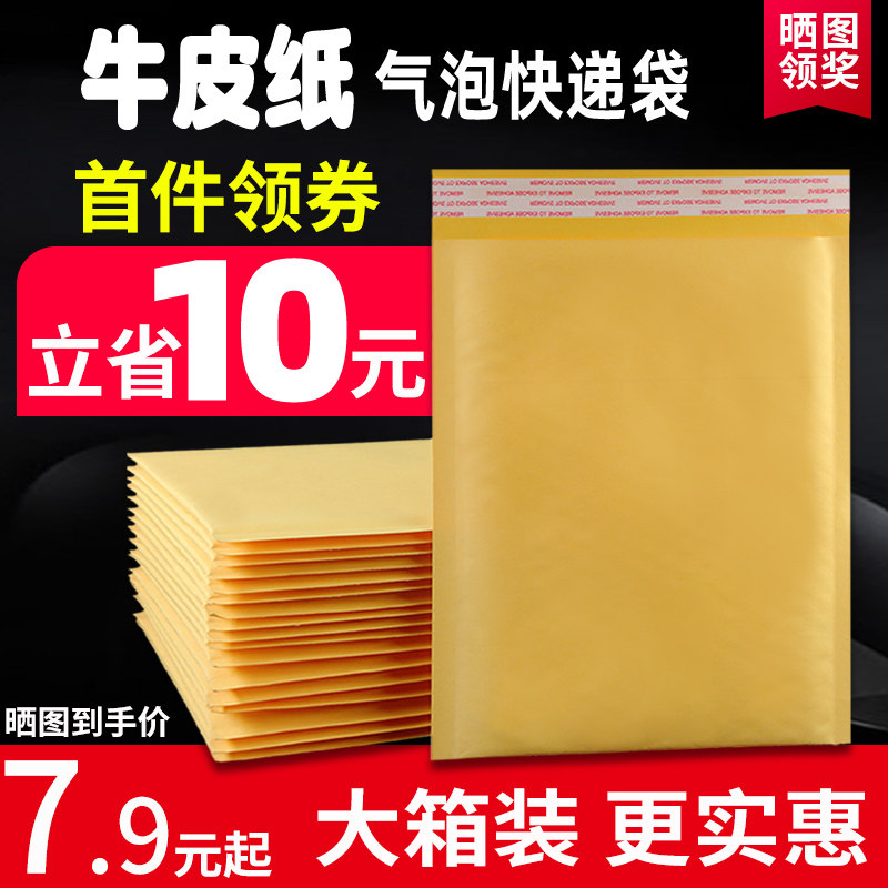 黄色牛皮纸气泡袋信封泡沫袋加厚膜快递包装打包袋防震防摔汽泡袋