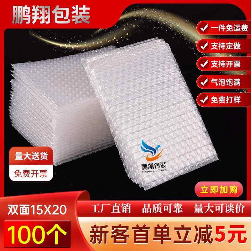 气泡袋15×20双层加厚快递打包装泡沫袋防震透明大泡泡汽泡袋