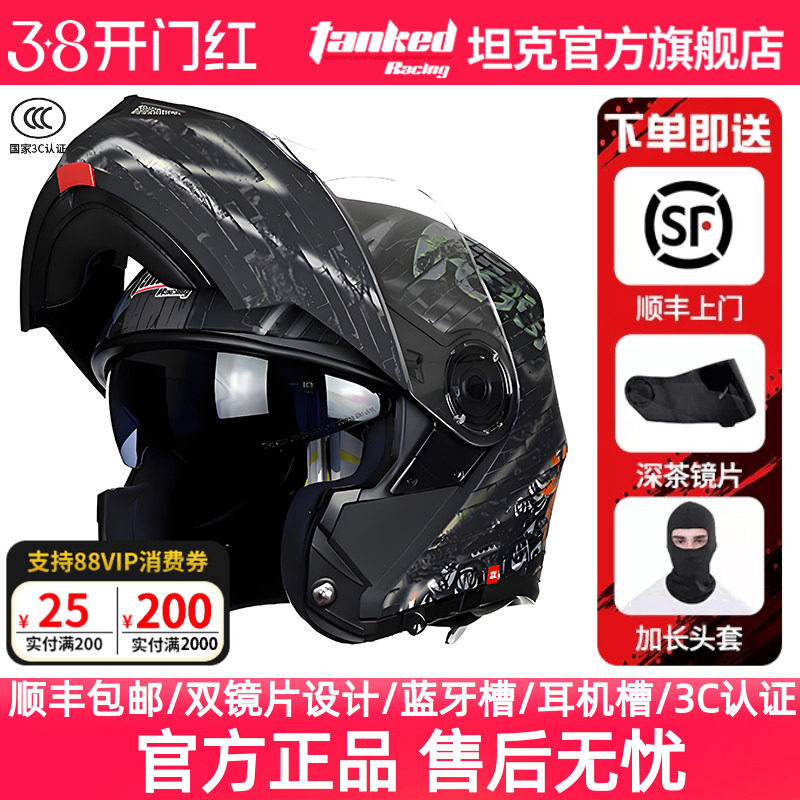 坦克头盔男女摩托车双镜片3C全盔防雾揭面盔全盔保暖安全头盔T270