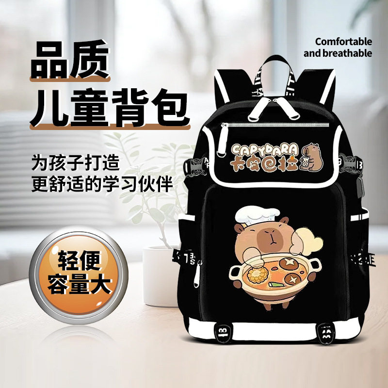 新款包卡皮巴拉女小学生书包减负护脊大容量背包可爱儿童男双肩包