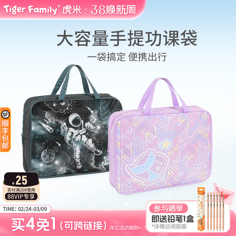 tigerfamily虎米 补习美术袋女小学生书包男手提拎功课外班专用袋
