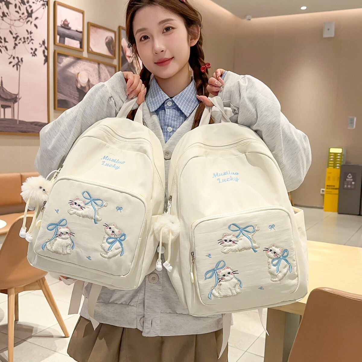 2026新款猫咪双肩包女小学生书包轻便初中生百搭校园潮流女背包
