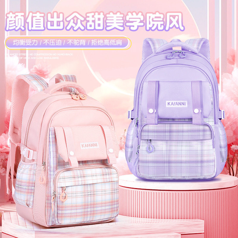 2025甜美学院风3-6年级女小学生书包大容量防水初中休闲双肩背包