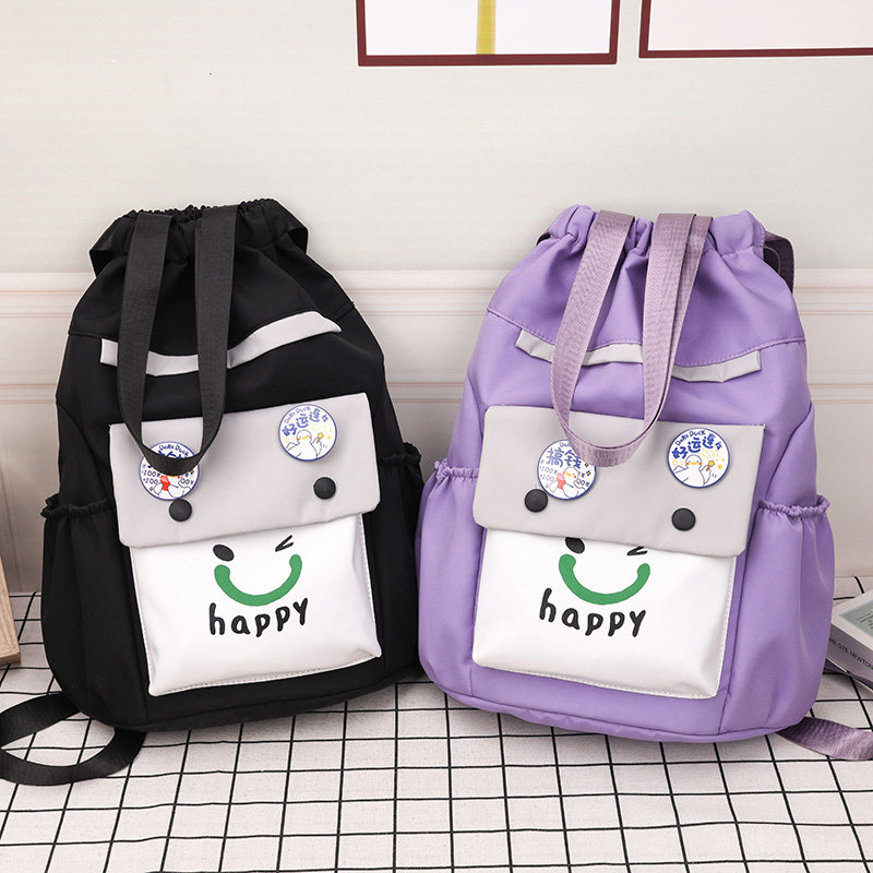 休闲户外出游背包洋气女小学生书包轻便抽带双肩包女孩休闲登山包