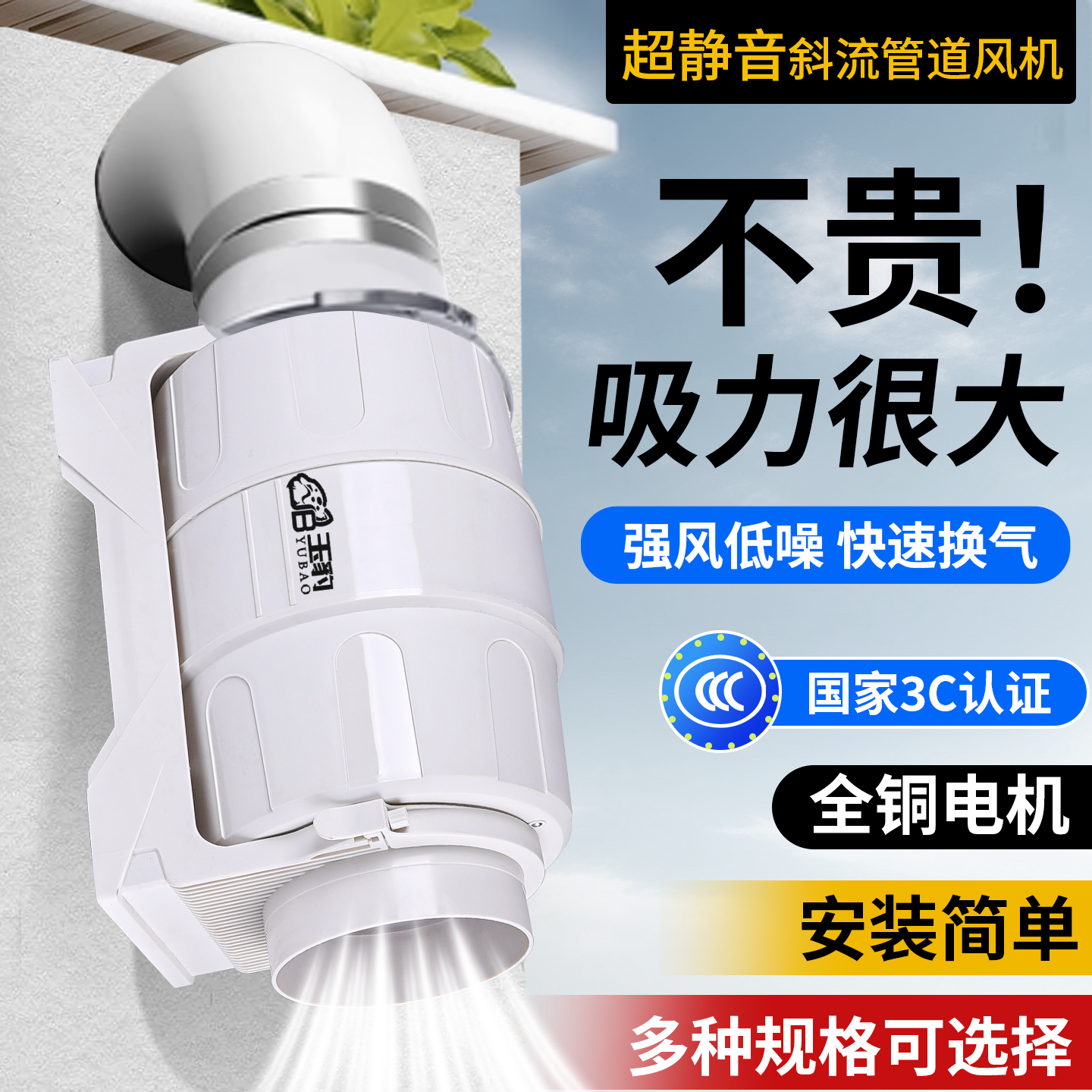 管道排风机强力轻音换气扇卫生间工业抽风机斜流增压式厨房排气扇