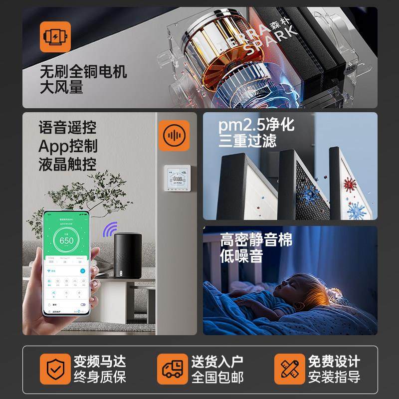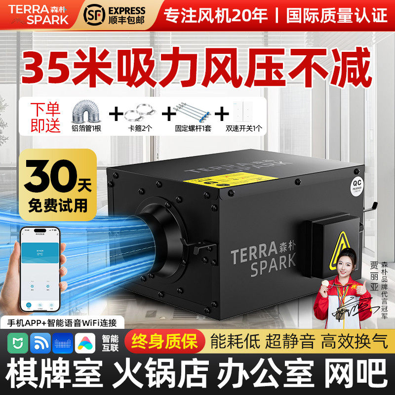 超静音新风换气机家用强力管道排风机风机新风系统商用通风排烟抽