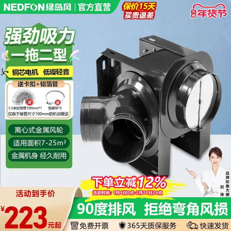 绿岛风管道排风机送风机饭店换气扇节能低音商用增压风机一拖二型
