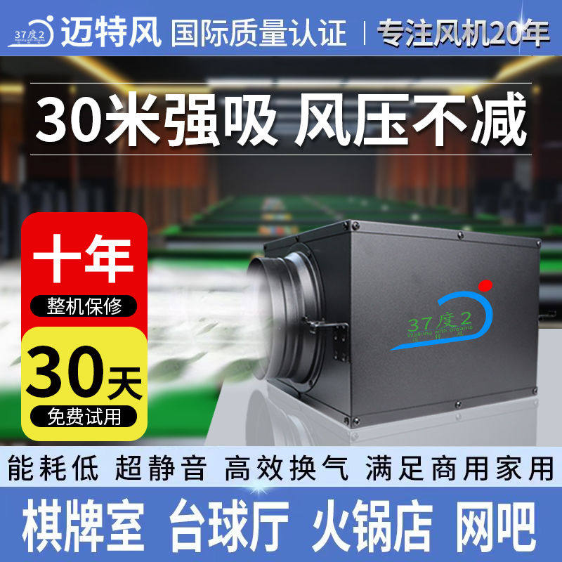 超静音管道排风机强力台球厅排风系统棋牌室排烟通风机新风系统商