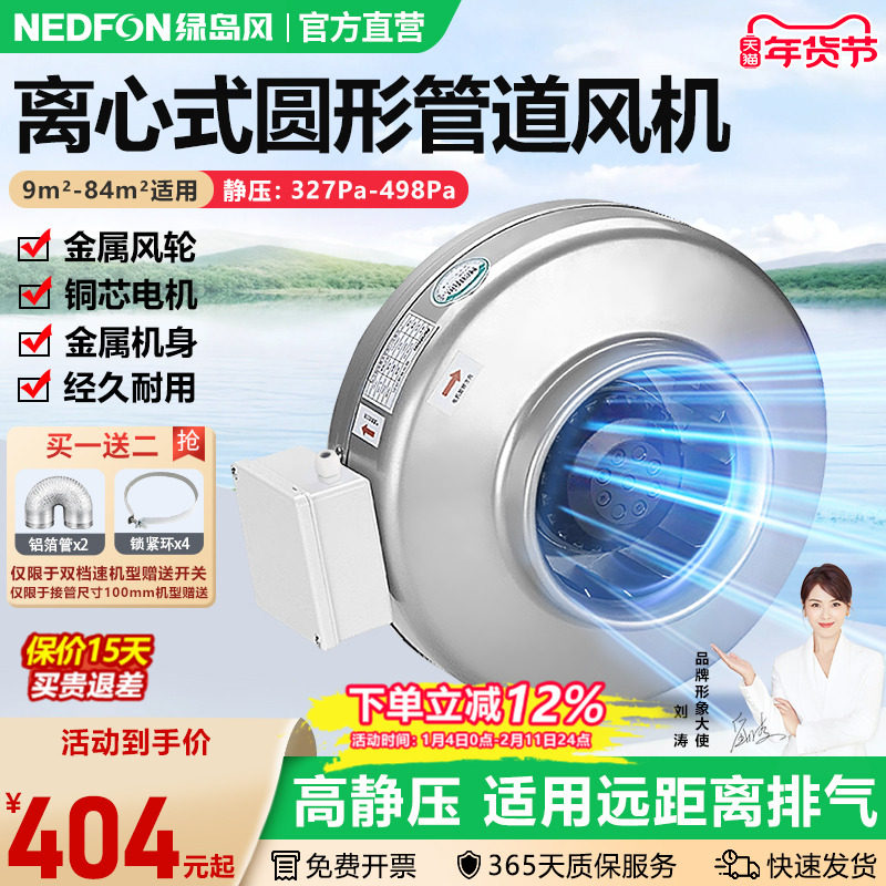 绿岛风圆形抽风机强力增压排气机餐厅工厂酒店管道排风机商用低音
