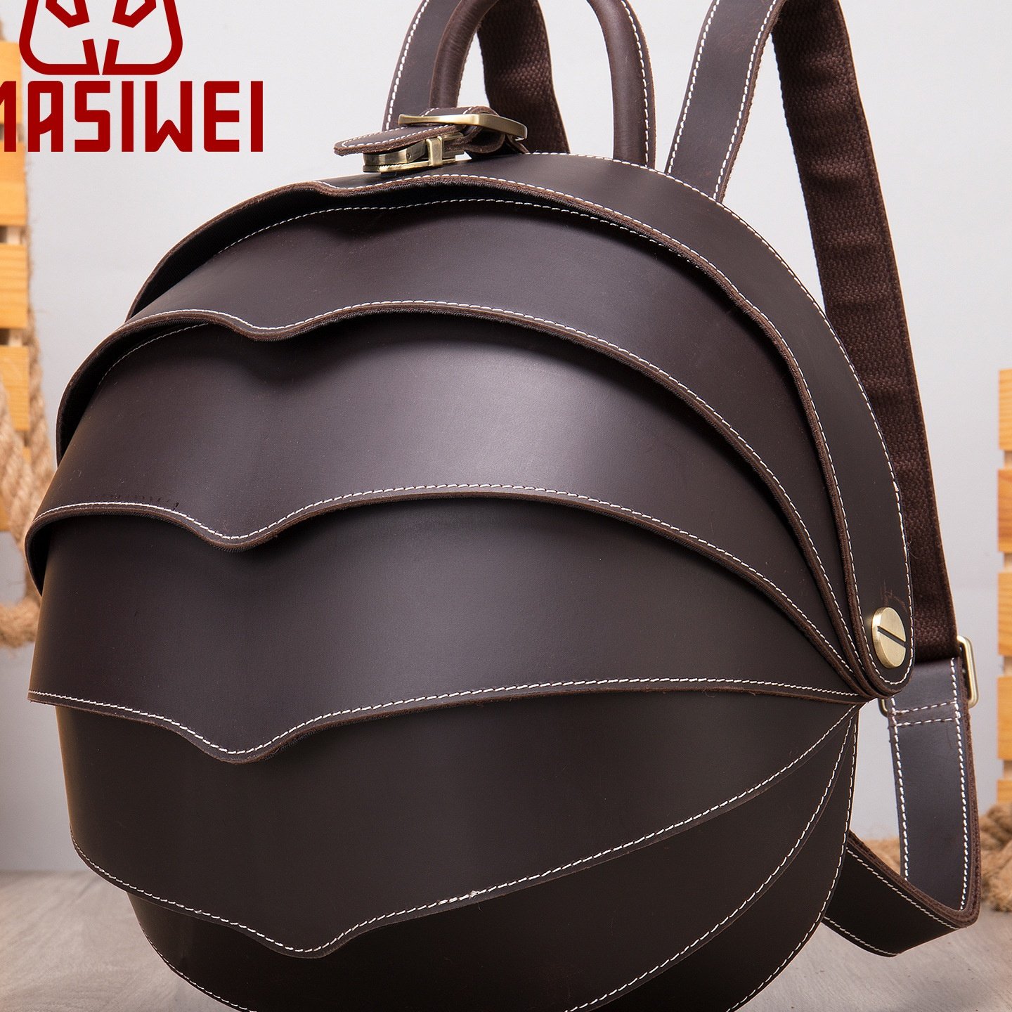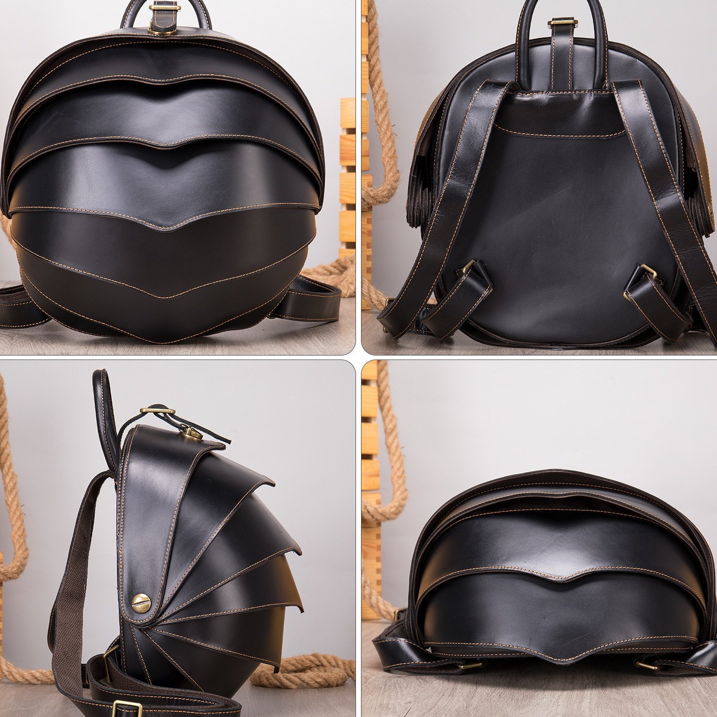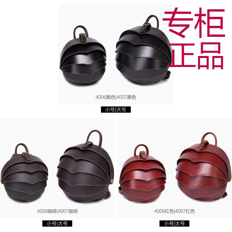 2025秋冬复古真皮创意双肩包个性甲壳虫背包男女圆形书包疯马