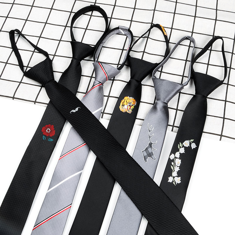 5cm黑色刺绣懒人免打拉链小领带ins学院风日系jk男女学生衬衫配饰